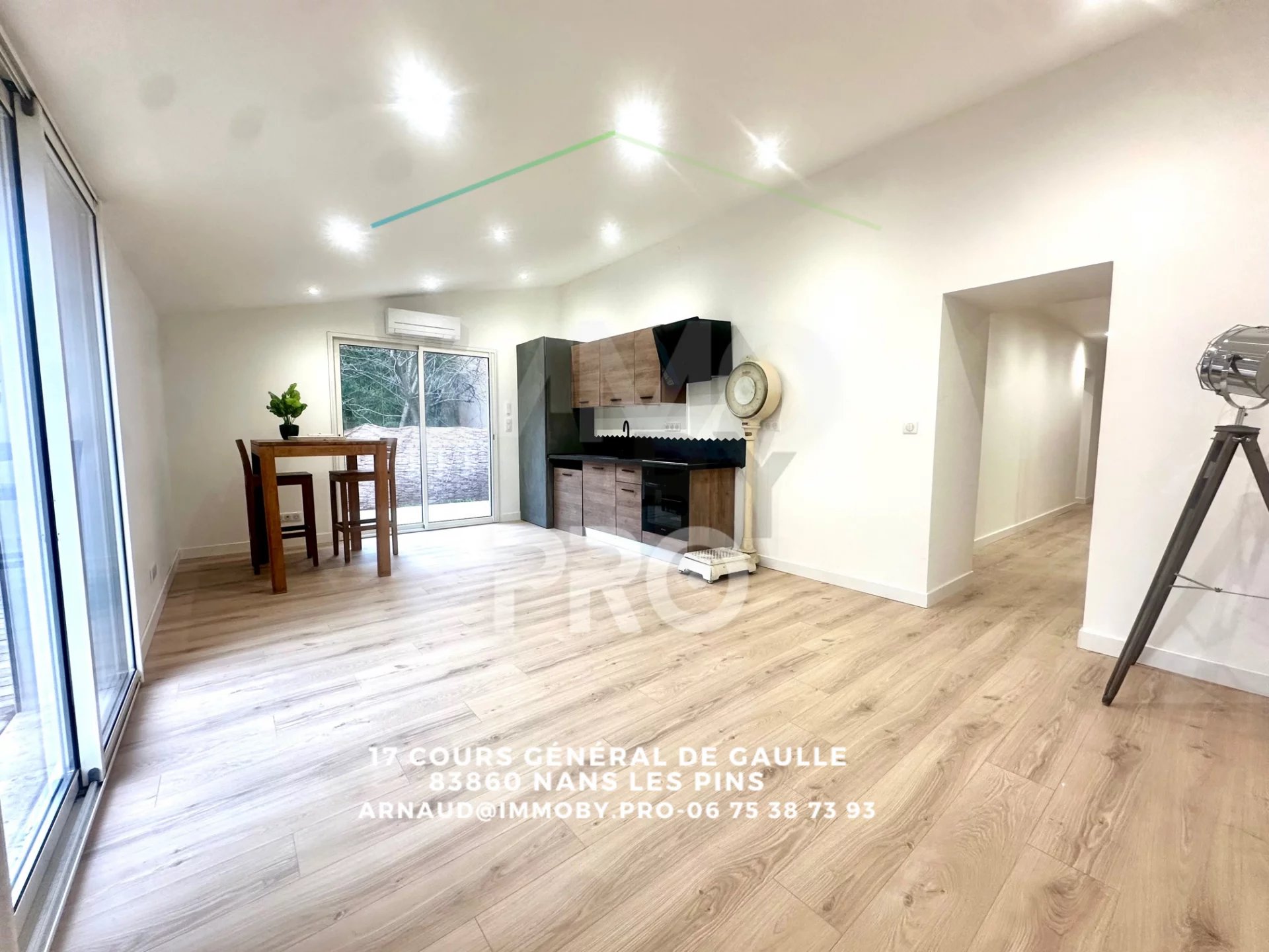 Plein centre-village de la commune de nans les pins, dans une copropriété calme et bien entretenue de 7 lots avec toiture refaite sous décennale, nous vous proposons un appartement totalement rénové en RDC disposant de son jardinet privatif clôturé de 69 M2 dont 40m2 en terrasse.